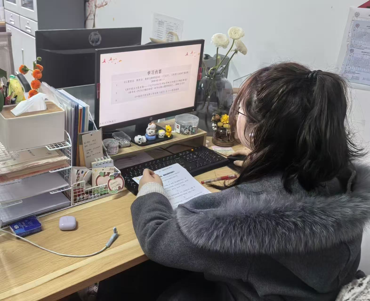 在专题学习环节,党员同志们深入研读习近平总书记重要文章,深刻领会新时代党员干部应有的担当精神与实干品格。大家一致认为,担当是共产党人的政治本色,要在教育教学、专业创作、服务师生中体现“愿担当”的自觉、“敢担当”的勇气、“善担当”的能力,将正确政绩观落实到推动学院高质量发展的具体实践中。
