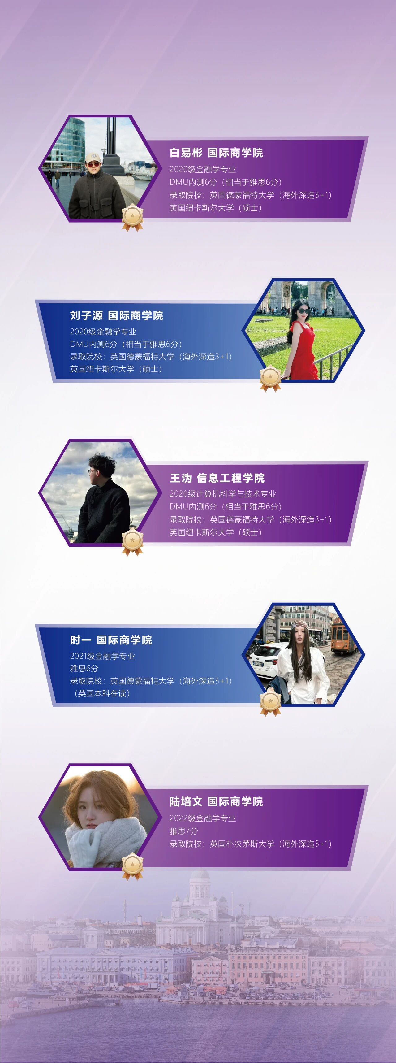 1.小班教学模式,根据学生专业、语言学习需求及语言基础制定个性化培养方案;2.校内语言教师团队及校外语言机构动态配合,提供多次语言模拟考试和多次多邻国考试,助力学生提升语言成绩,达到海外院校语言成绩要求;3.多举措促进GPA提升,为申请海外院校做准备(注:针对插班就读学生);4.设置“海外深造定向培养语言高分奖学金”、“海外深造定向培养语言达标奖学金”,助力个性化培养。