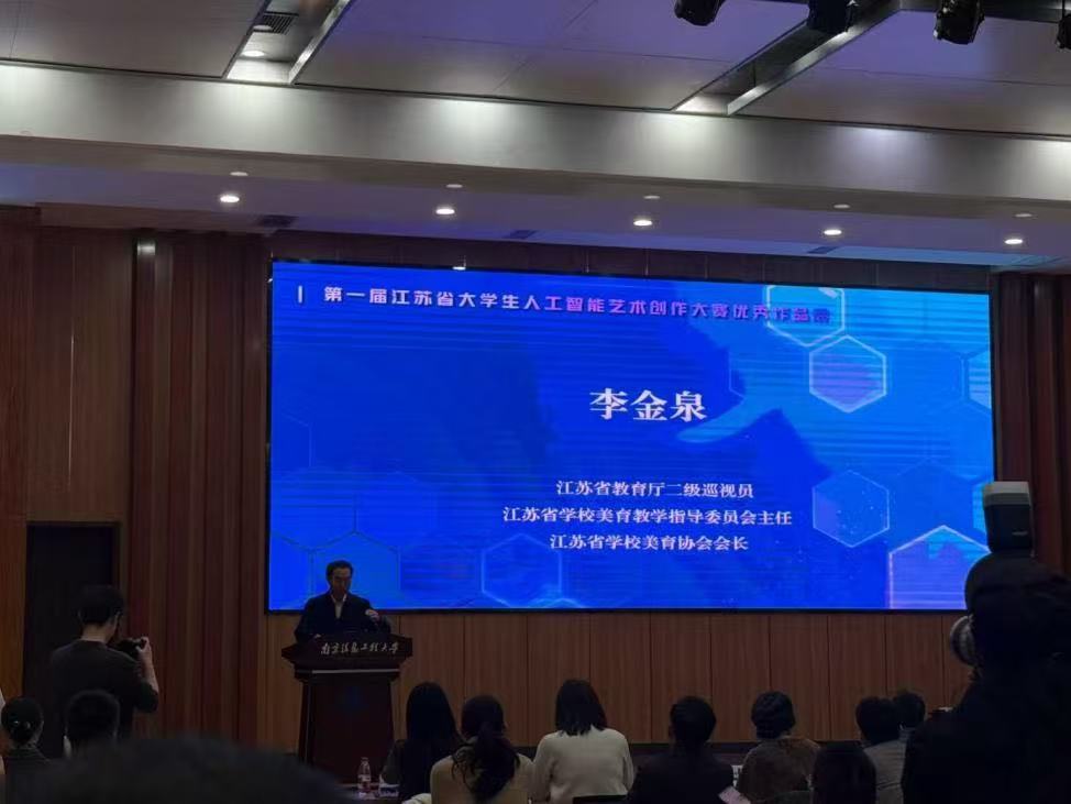 第一届江苏省大学生人工智能艺术创作大赛以“艺启 AI·智绘未来”为主题,旨在引导大学生运用人工智能技术,充分发挥想象力开展艺术创作。此次大赛围绕青春校园、数智创新、环保生态、传统文化等主题,面向全省高校进行作品征集,得到了全省高校的积极响应。大赛设置绘画、设计、影像、音乐四个类别,共征集到128所高校报送的1585件作品。经过评委库专家的初评和终评,遴选出173幅作品入选展览。我校绘画类作品《江南织梦》和影像类作品《飞天一梦》凭借独特的创意和精湛的技术,在众多参赛作品中脱颖而出,成功入围展览。此次入围不仅为我校争得了荣誉,也为师生们提供了宝贵的交流学习机会,激励着更多人投身于人工智能艺术创作的探索与实践。